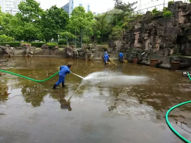 4月27日,中山公园内的景观河正式启动水生态修复工程。记者在现场看到,几位工作人员一边利用水泵不断吸抽河水,一边冲洗已经见底的部分河床。